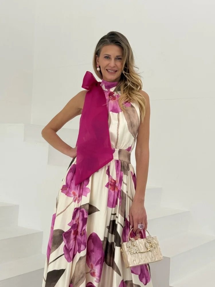 Sukienka maxi w kwiaty amarantowa MARBEL