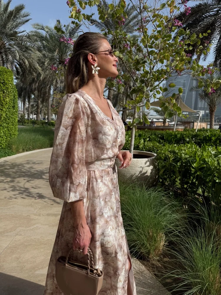 Sukienka beżowa długa KWIAT